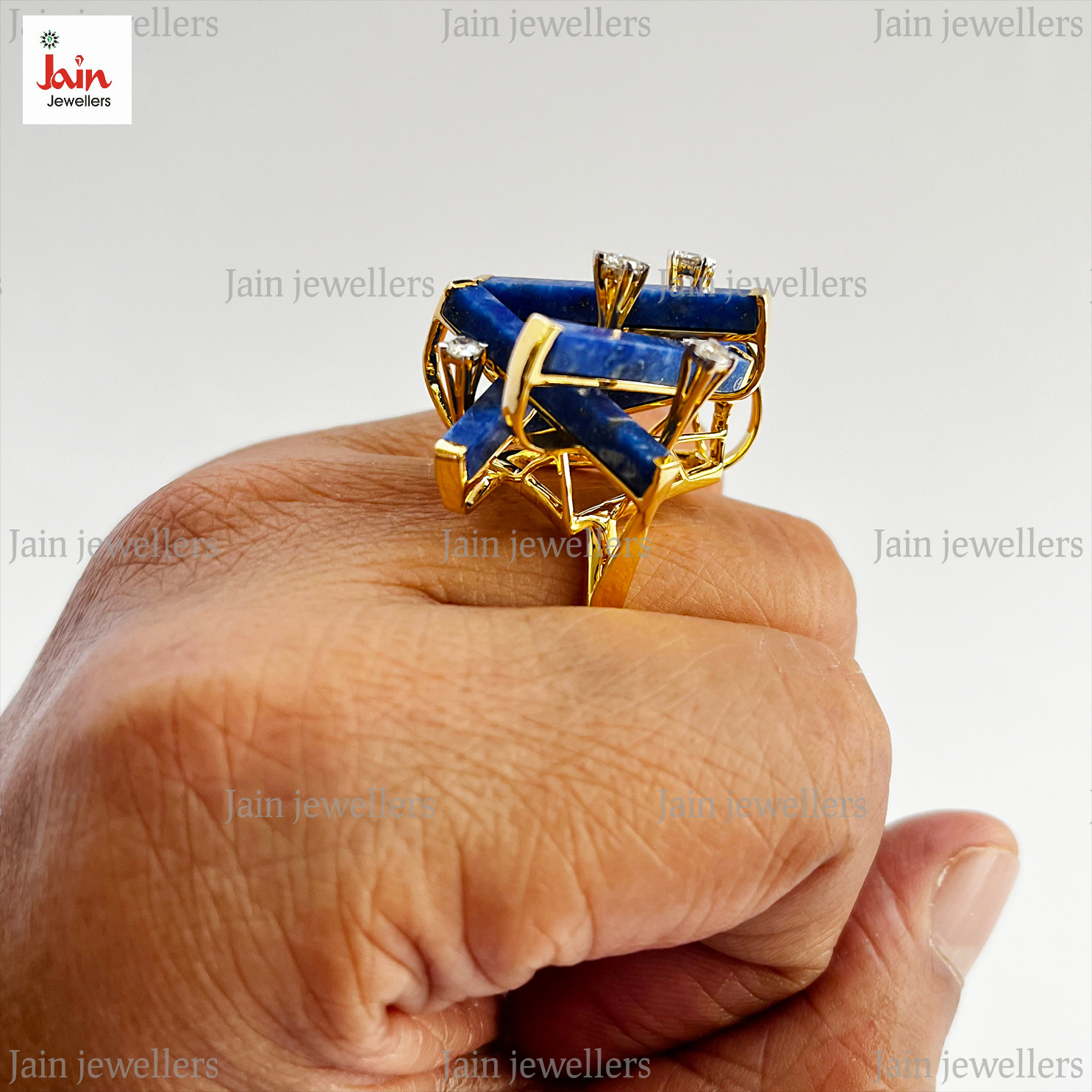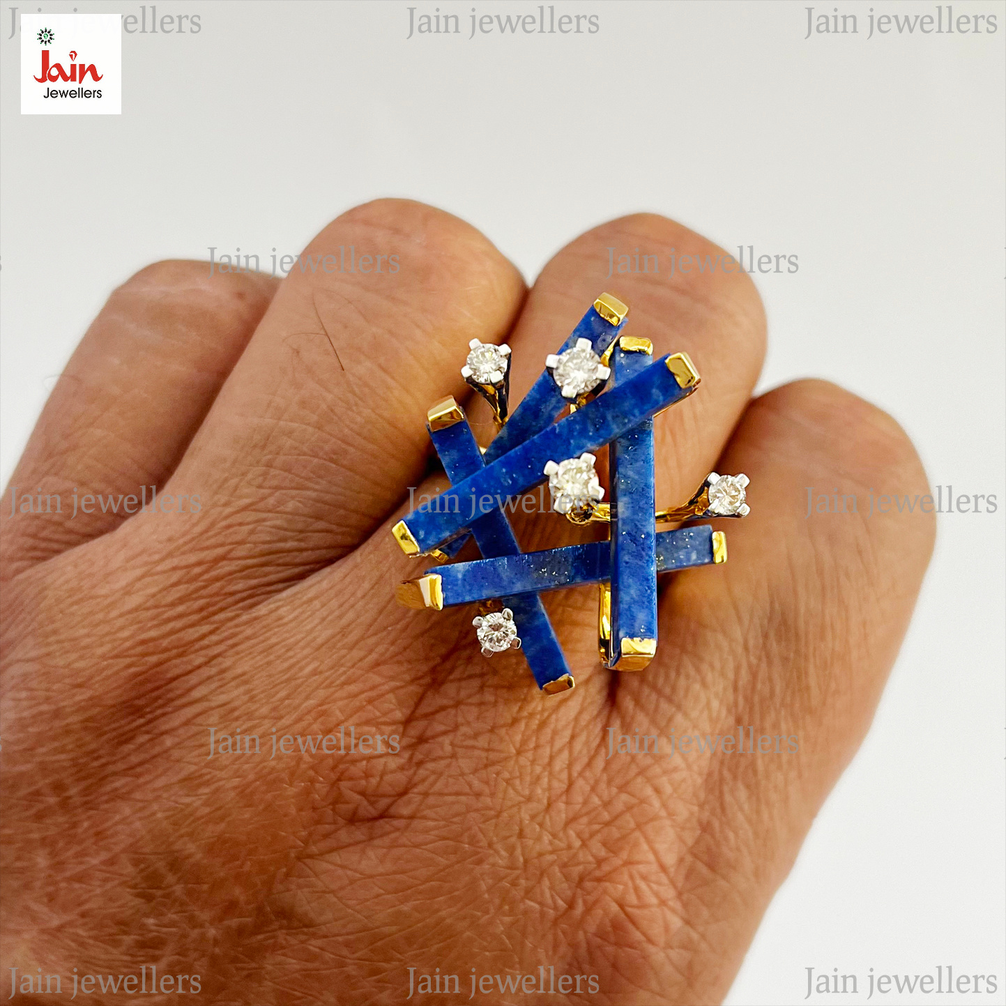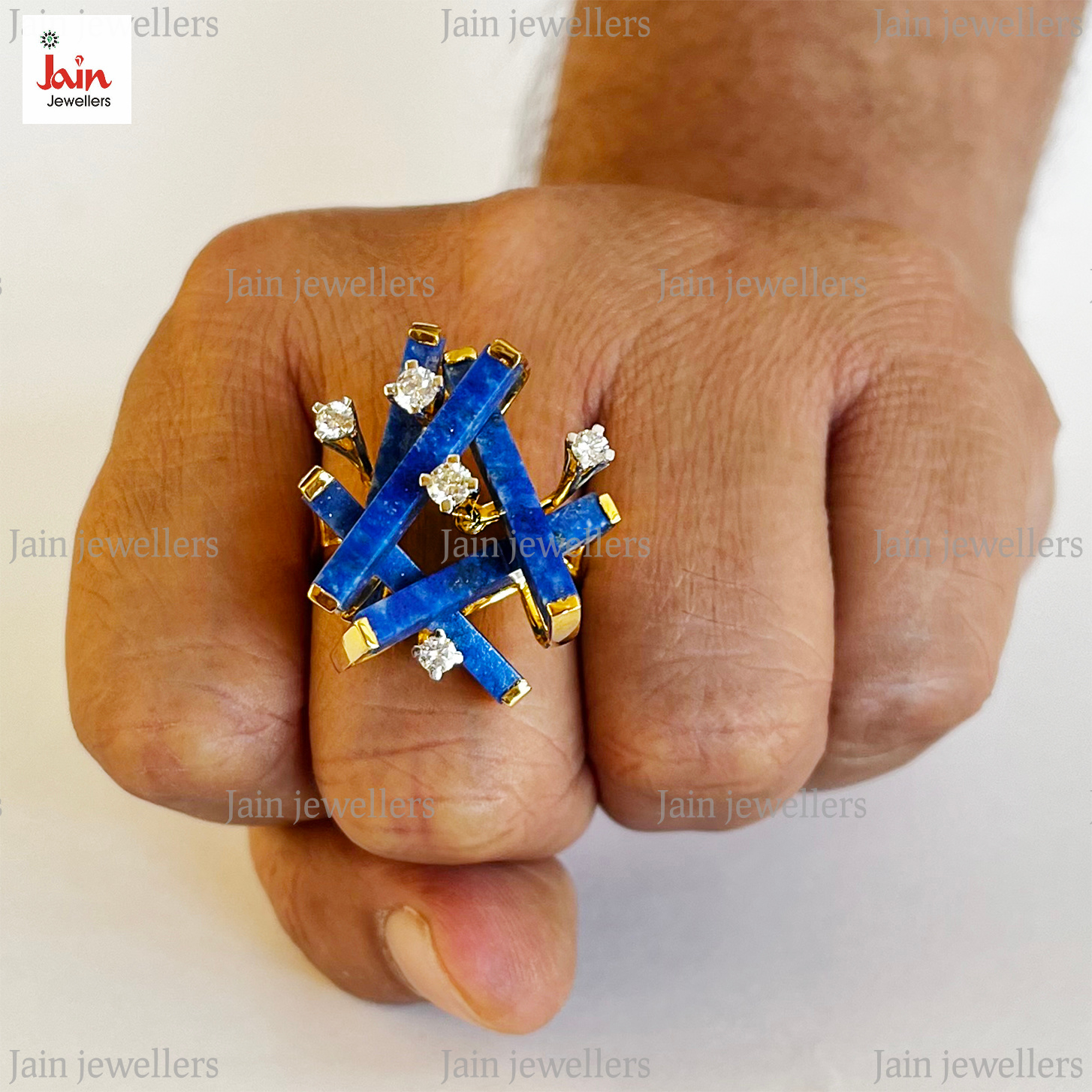 0.60 Ct G-H/SI Real Natural Diamonds & Lapis Lazuli Men'S Ring 18Kt Gold 16 Gms