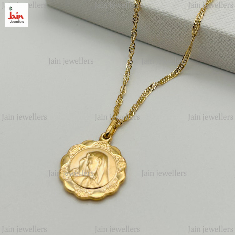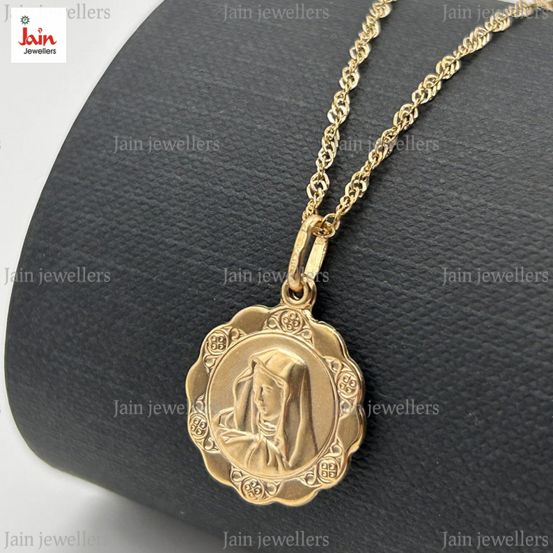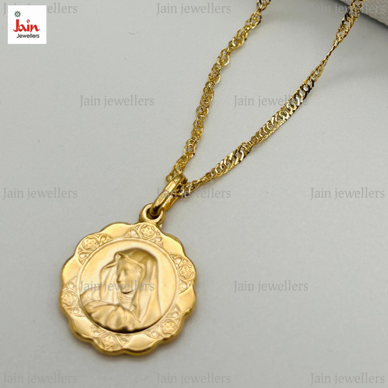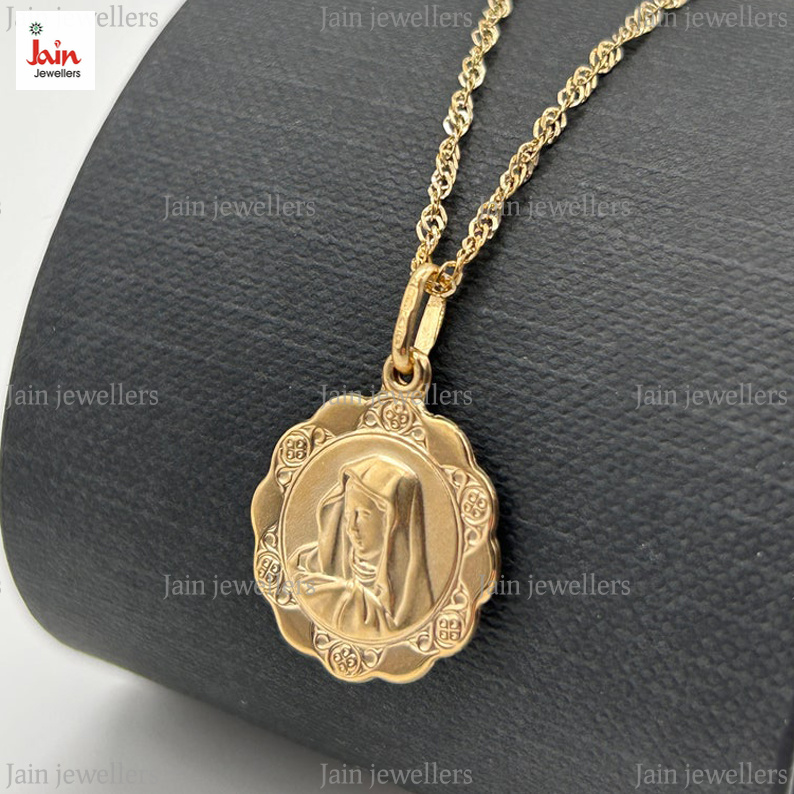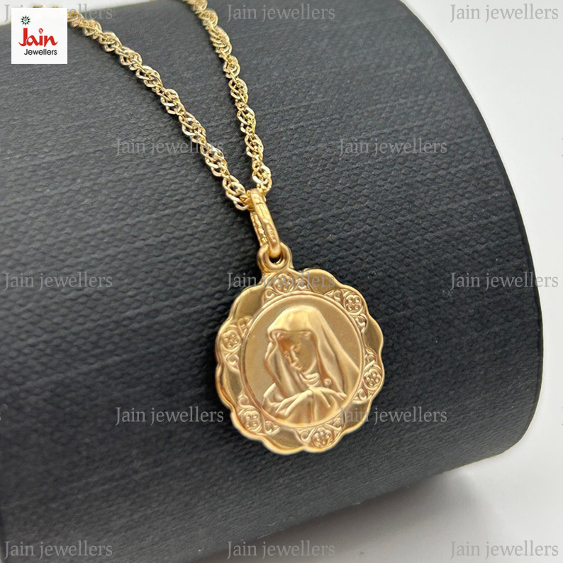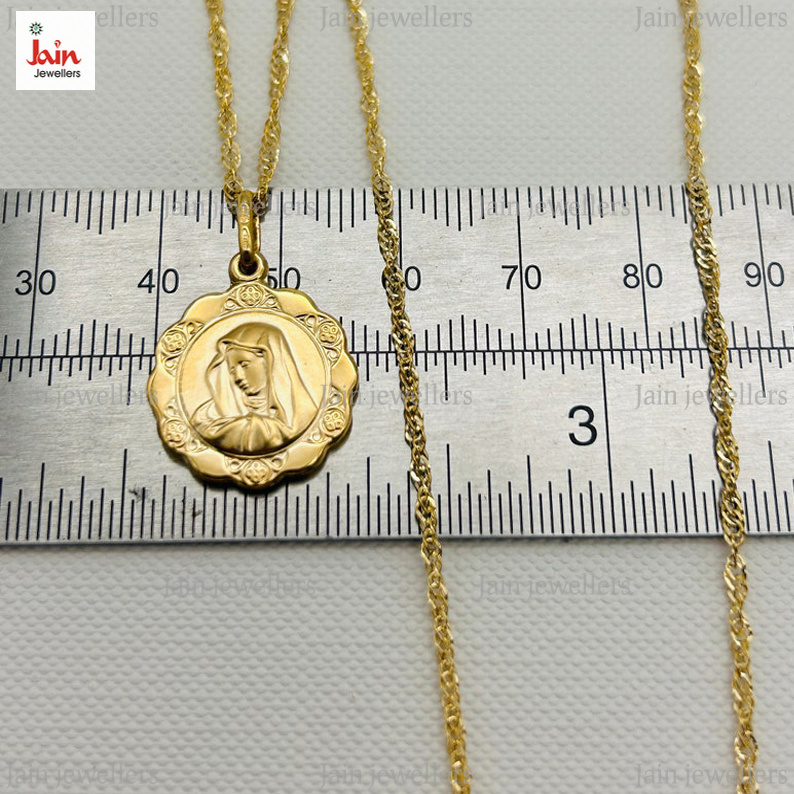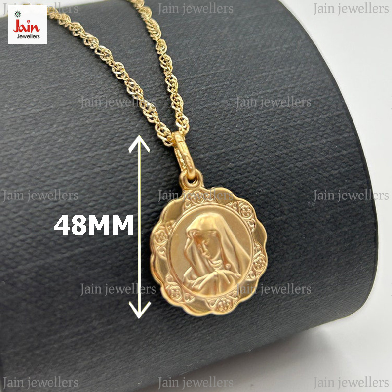 18 Kt, 22 Kt Real Gold Madonna Necklace Chain With Pendant 26 Grams 48 MM 22 In