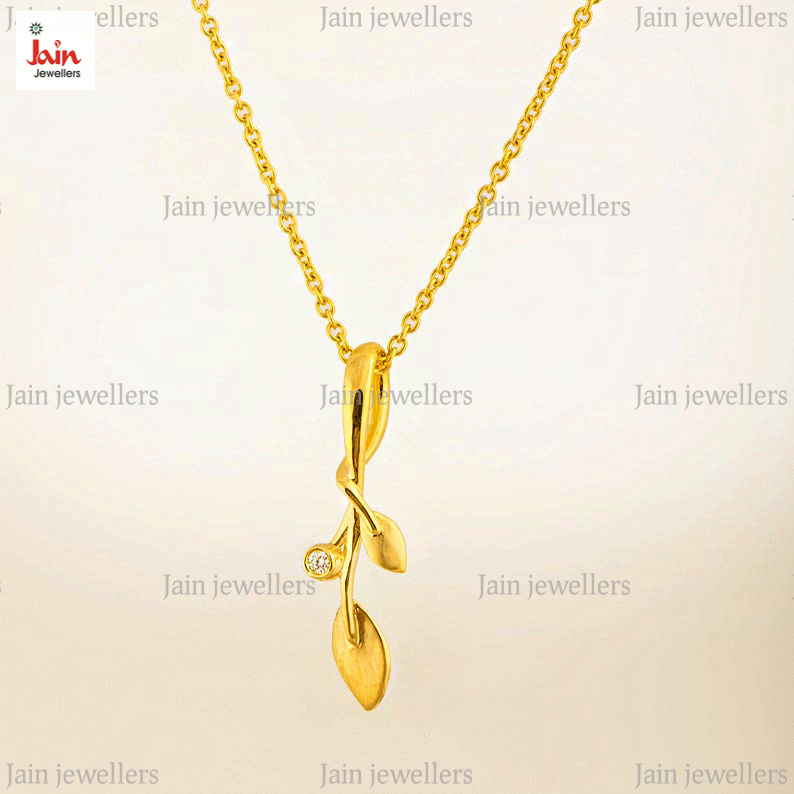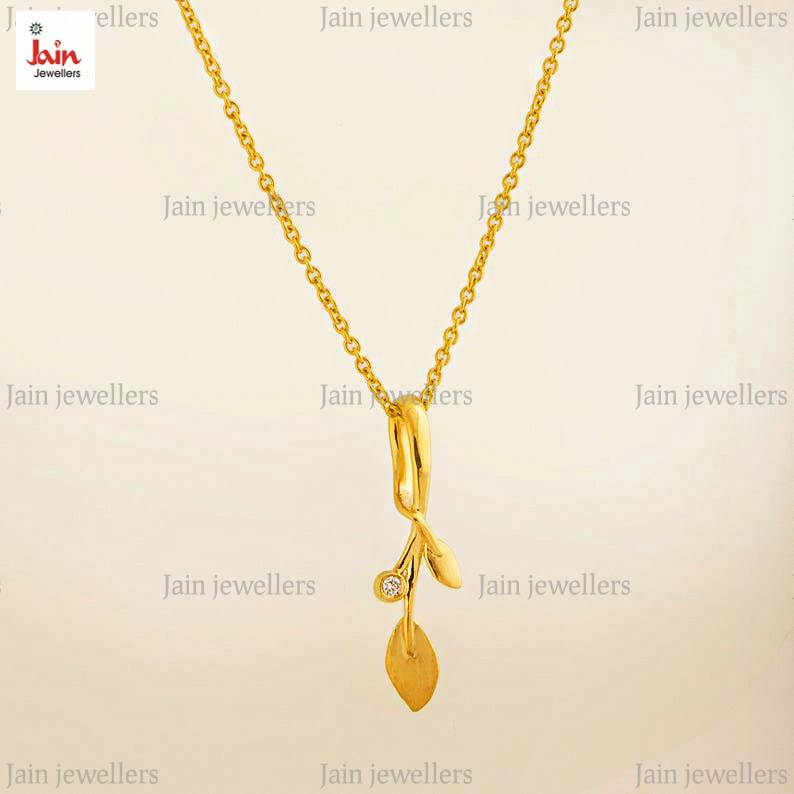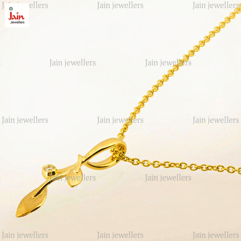 18 Kt Real Solid Yellow Gold Filigree Art Nouveau Leaf Chain Necklace Pendant