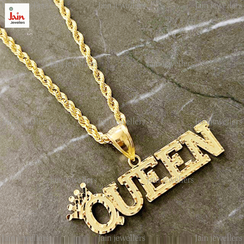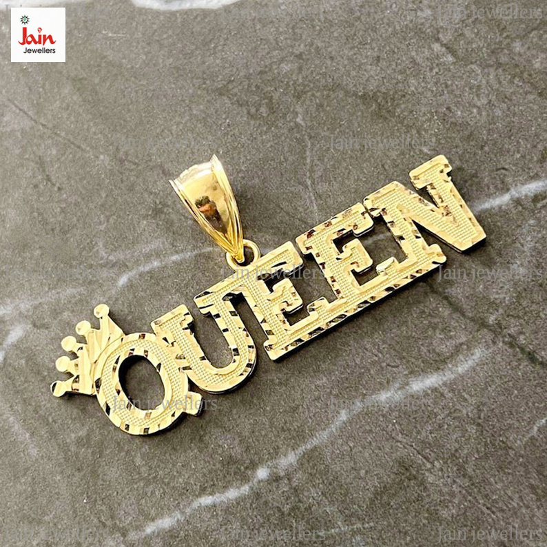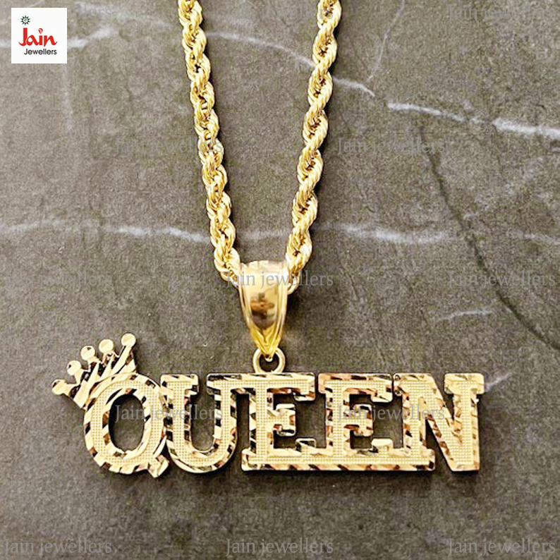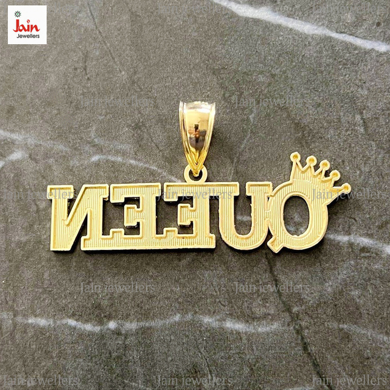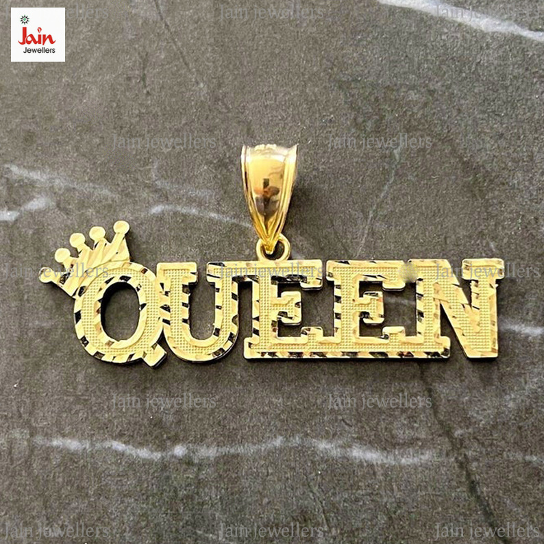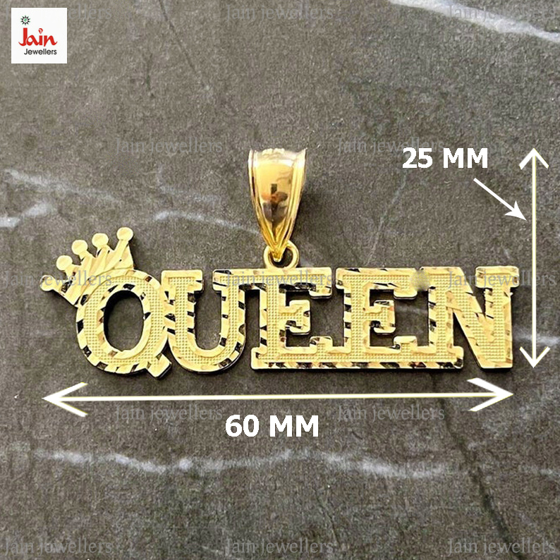 18 Kt, 22 Kt Gold Queen Statement Script with Crown Necklace Pendant 15 Gms 60MM