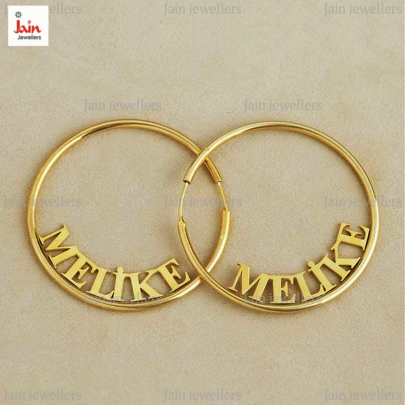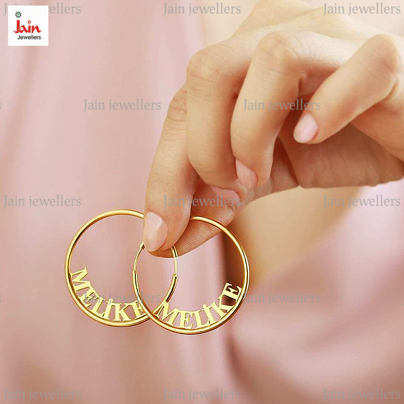 18 Kt Real Solid Yellow Gold Personalized Initial Name Huggie Hoop Earrings