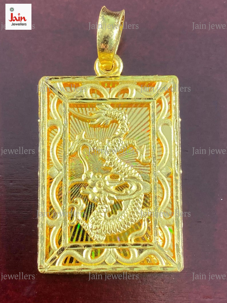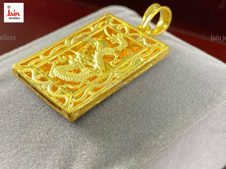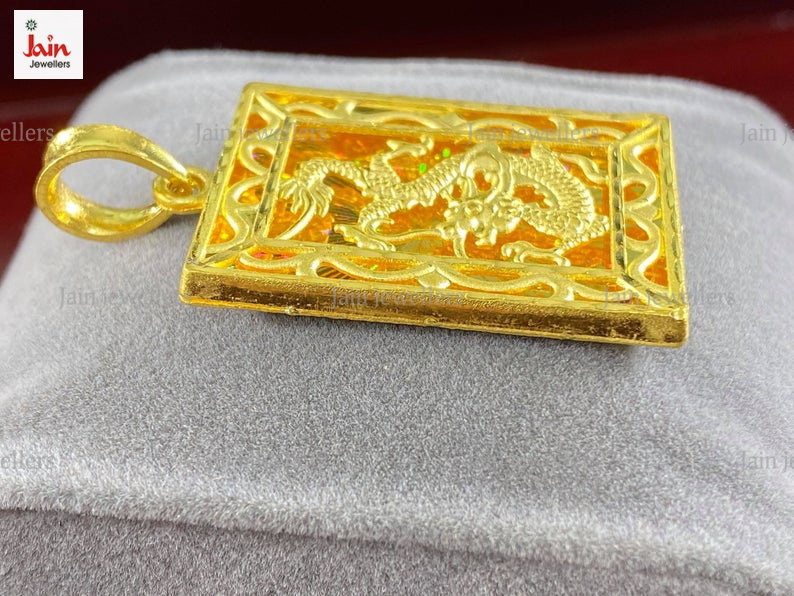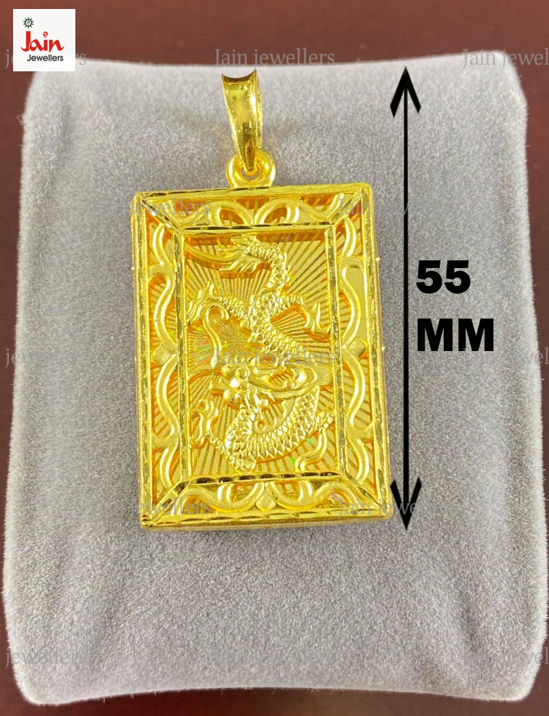 REAL GOLD 18 Kt Hallmark Solid Yellow Gold Dragon Pendant Necklace 20 Gram 55 MM
