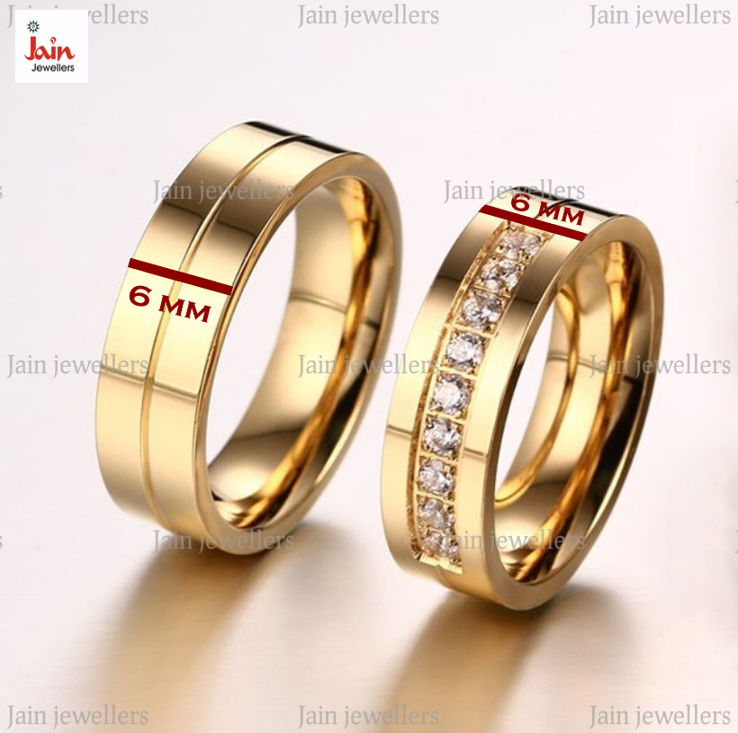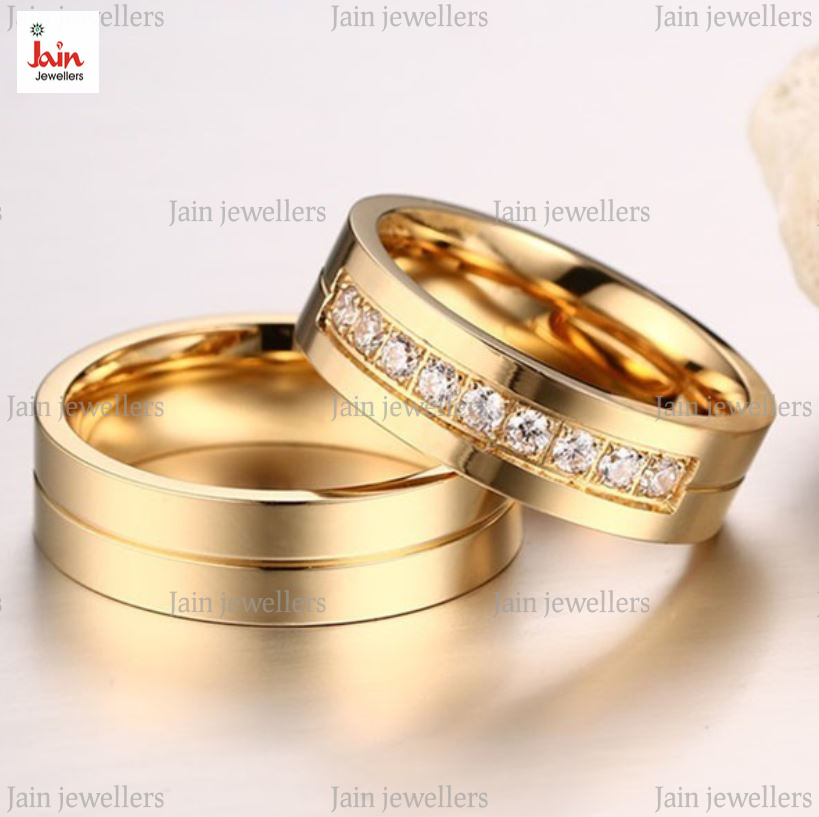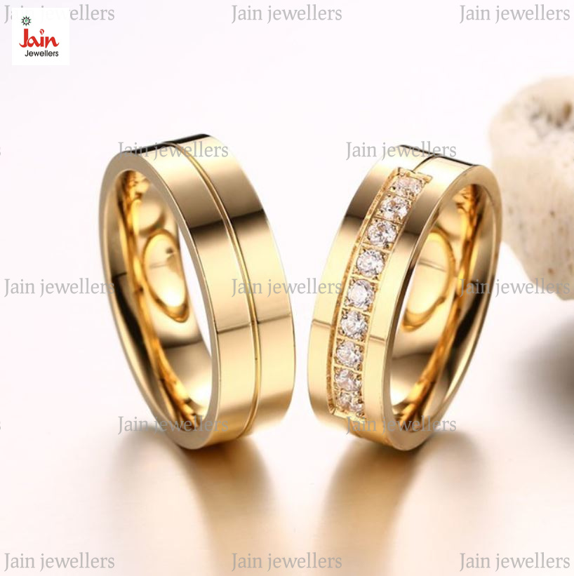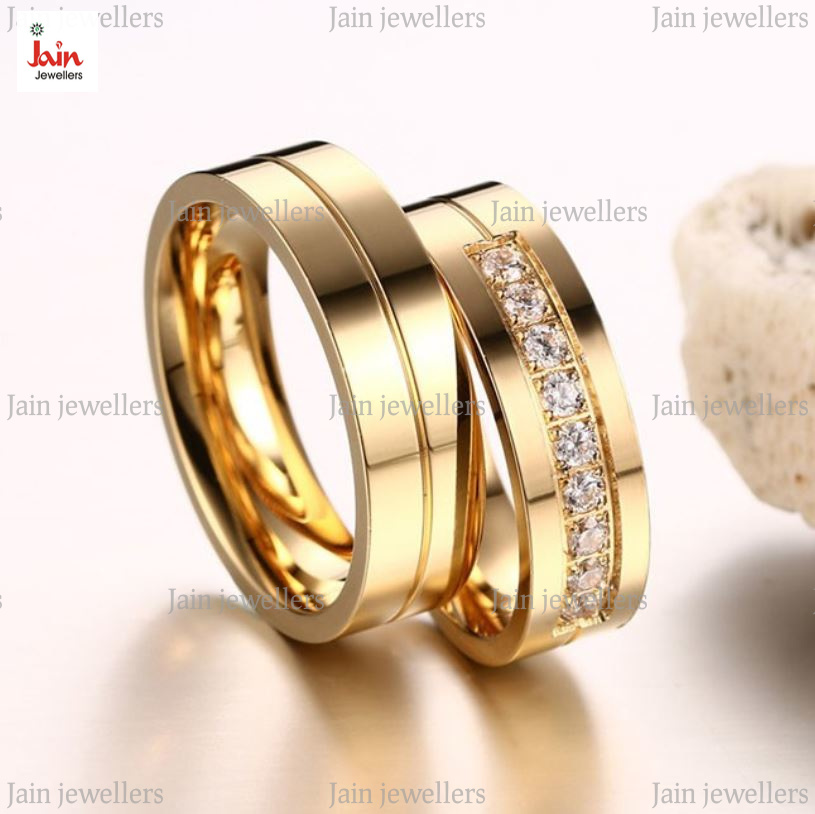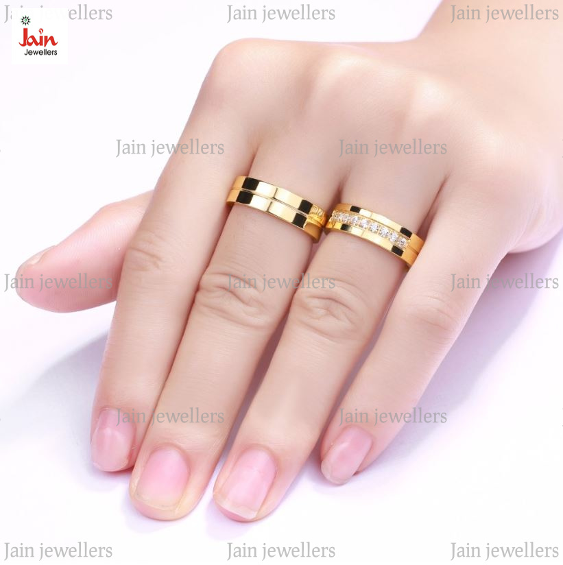 18 Kt Real Solid Yellow Gold CZ Stones His & Her Wedding Couple Band Rings 2 Pc